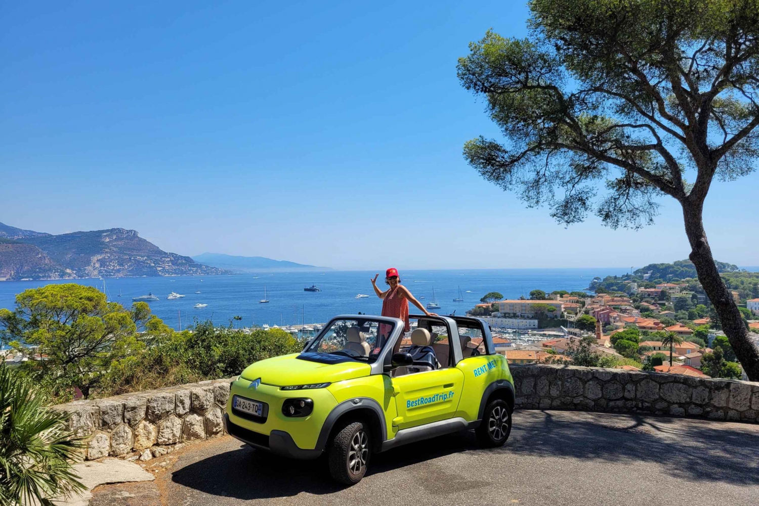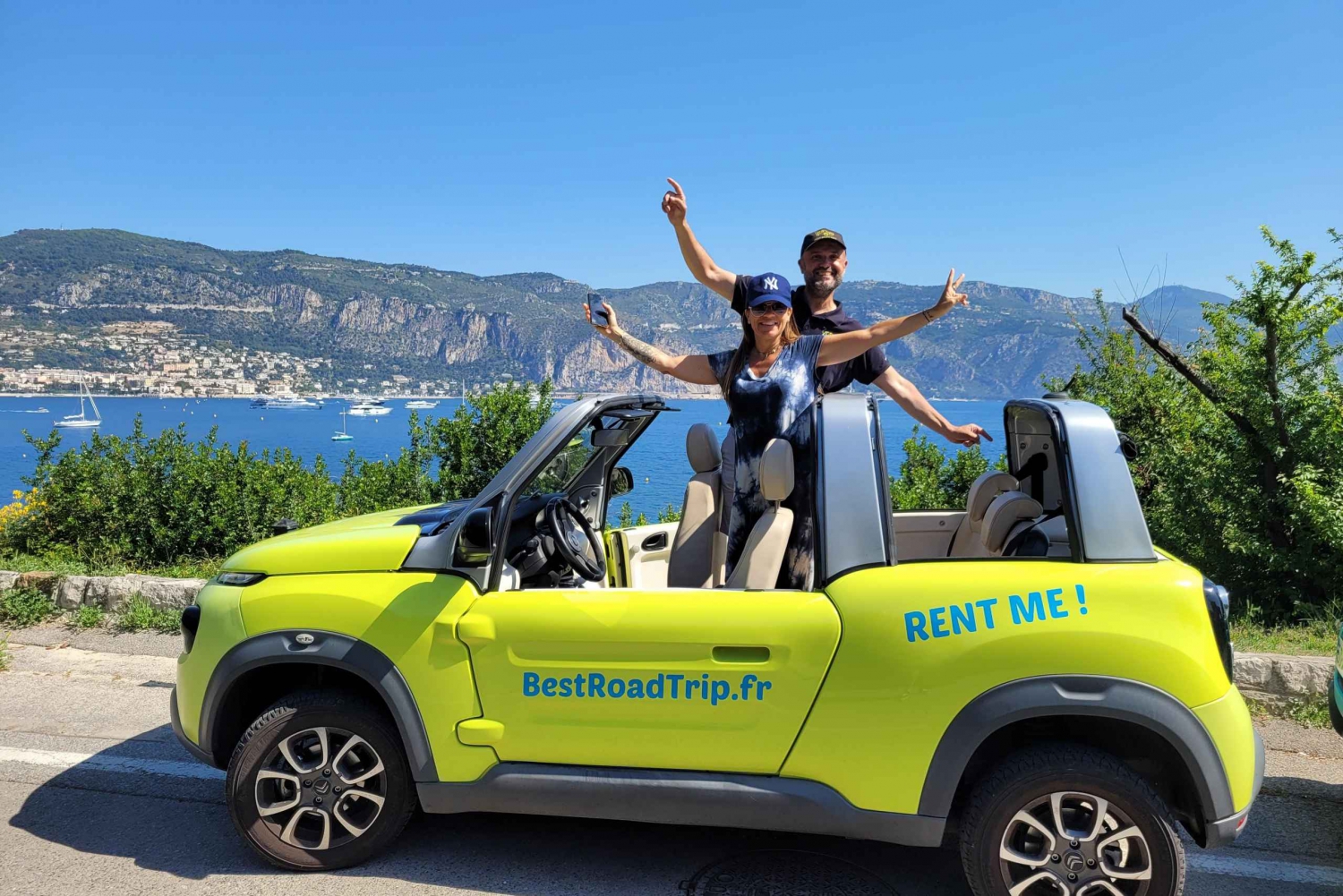 Embark on a fascinating French Riviera road trip in a completely electric SUV convertible, traveling from Nice to Monaco and back to Nice via Eze.