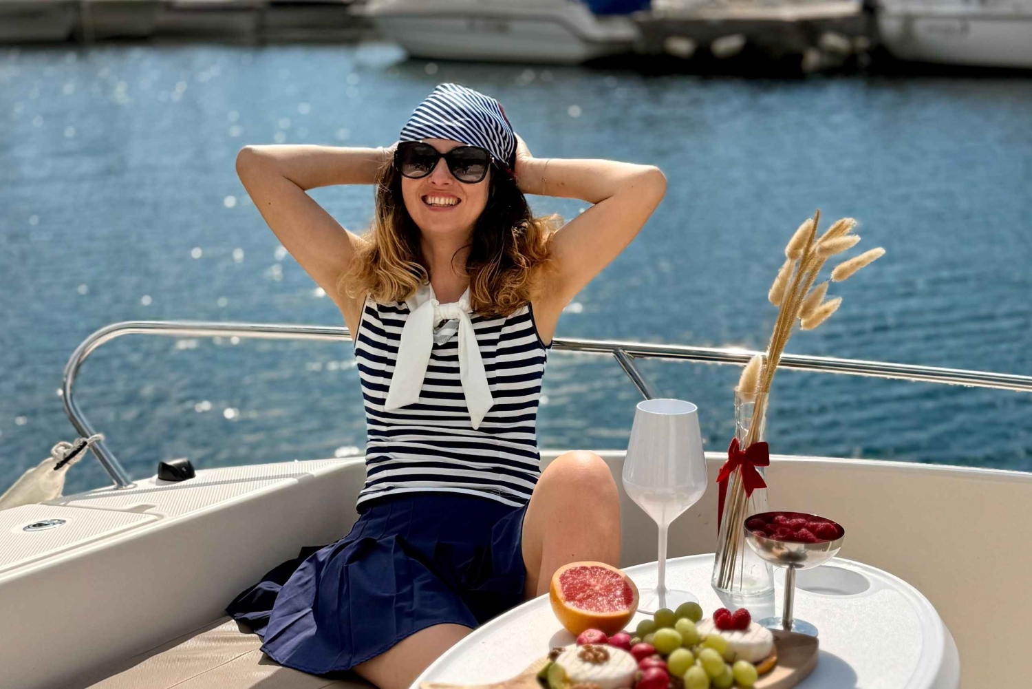 Upgrade your day with a gourmet picnic on the boat, fresh local flavors, sea breeze, and sun-kissed views.